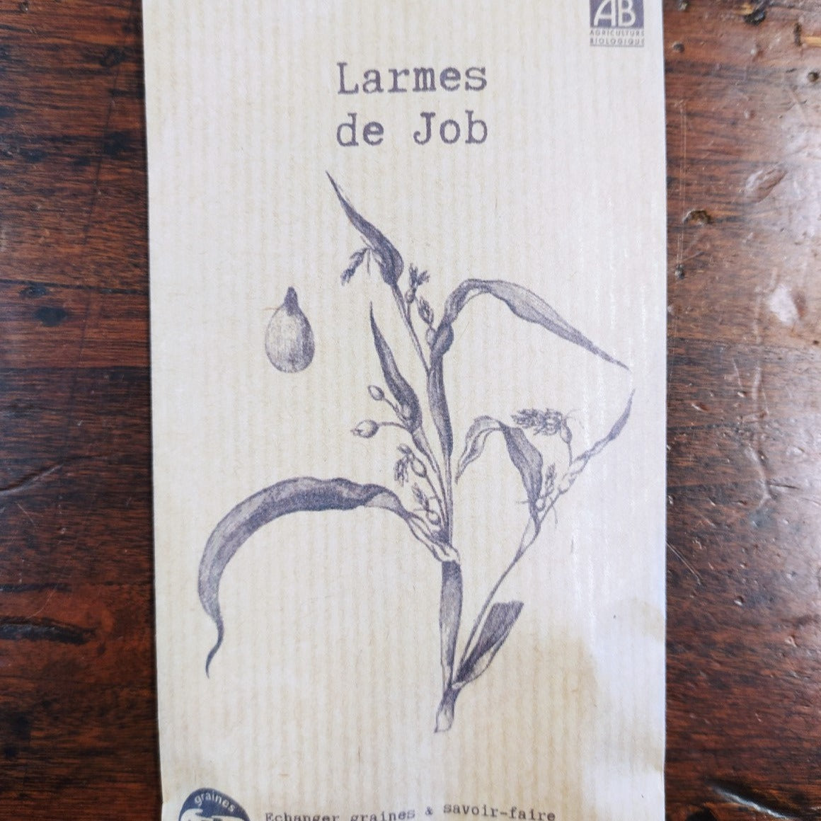 De la famille du maïs, cette poacée est originaire d'Asie. Ses graines naturellement perforées, et nacrées, utilisée comme des perles, lui valent aussi le nom d'herbe à chapelet. Consommable comme ses cousins, malheureusement sous notre climat, la plante ne prolifère pas autant que dans sa région natale.